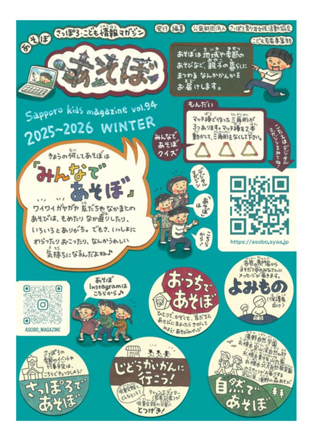 「あそぼ」は、札幌圏を中心としたこども情報を掲載したフリーペーパーです。