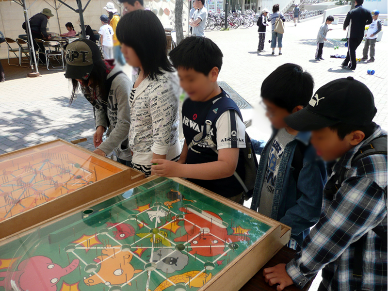 ストラックアウト、スマートボール、スーパーボールすくい、木のプールなど子どもたちが喜ぶ多彩な遊び道具を各種用意しています。またけん玉やコマなどの昔あそびのコーナーの運営も展開します。