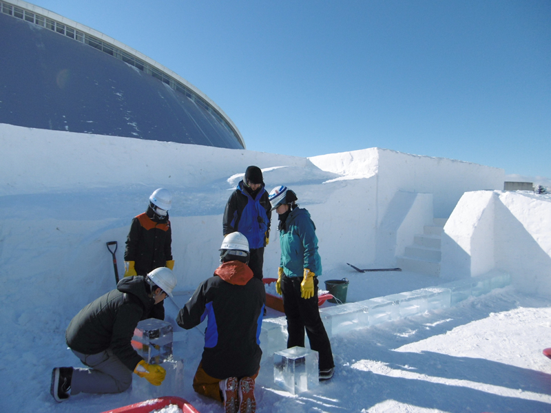 つどーむ会場ではチューブスライダーや氷の滑り台、雪像などの設計、制作を行い、開催期間は、会場の運営、企画イベント、ボランティアのコーディネート業務を行っております。